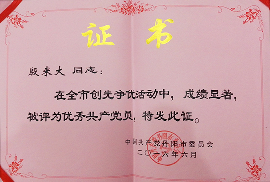 優秀共產黨員證書